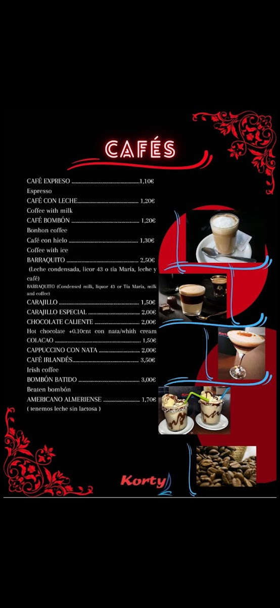 Welcome to CAFETERÍA KORTY, a delightful haven located in the scenic Zona Portuaria of Roquetas de Mar, Almería. This charming coffee shop is famed for its warm ambiance and exceptional menu offerings. Black coffee aficionados and casual drinkers alike will find joy in their carefully crafted beverages.
